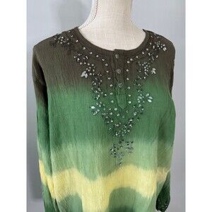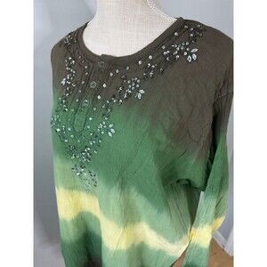 Vtg 90s Merona Tie-dye Beaded Embroidered Tunic Blouse Size XL Fairy Whimsygoth