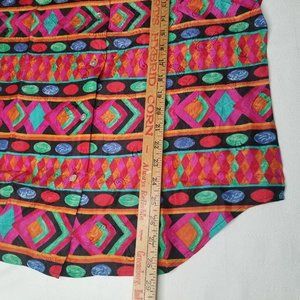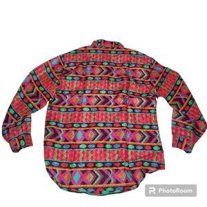 Vtg 90s Metro Express 100% Silk Blouse Tropical Artsy Abstract Retro Shirt Med