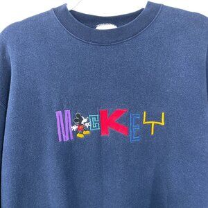 Vtg 90's Mickey & Co Size L Crewneck Sweatshirt Navy Blue Disney Made in USA