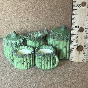 Vintage Miniature Resin Asparagus Tea Set Mini Doll House Plate Garden Cottage