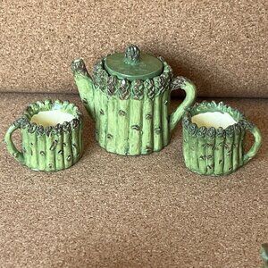 Vtg 90s Miniature Resin Asparagus Tea Set Mini Doll House Plate Garden Cottage