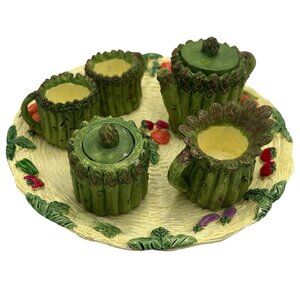 Vtg 90s Miniature Resin Asparagus Tea Set w/ Plate Mini Garden Cottage Dollhouse