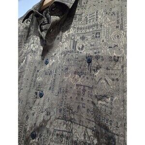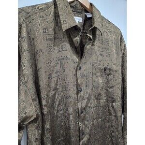 Vtg 90s Montello Abstract Olive Green Shiny Button Up Shirt Size L