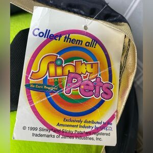 Vtg 90s with Nanco tag Slinky Pets Neon Green Alien Big Eyes 7” wide Head Large Stuffed Alien Approximately 17” not stretched out to about 27” Long Plush when stretched out.