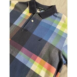 Vtg. 90s Nautica multi color grid pattern polo SZ Small