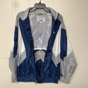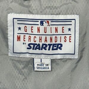 This vintage 90s New York Yankees MLB Starter full zip windbreaker jacket in size L is a stylish and nostalgic piece perfect for any baseball fan. The jacket features the iconic team colors of navy, gray, and white, making it a great addition to any Yankees fan's collection. Made by Starter, known for their quality sports apparel, this jacket is a must-have for any unisex adult fan of the Major League Baseball team.