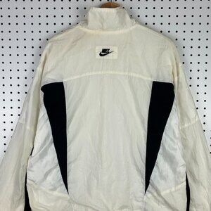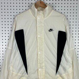 Vtg 90s Nike Windbreaker Jacket Large Off White Black Striped Color Block READ