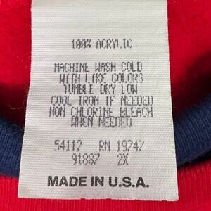 Vintage 90s Plus 2X Curvy Mock Layered Neckline Crewneck Pullover Red Navy Blue Argyle Insert Inset Grandma Granny Grannycore Preppy Bright American Made
