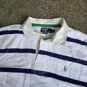 vtg 90s y2k POLO RALPH LAUREN small horse logo colorblock stripe heavyweight padded polo rugby shirt