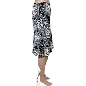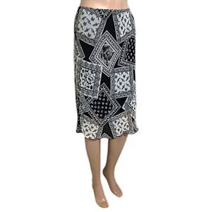 Vtg 90s Patchwork Print Midi Skirt S Lettuce Hem Sheer Overlay Bohemian Grunge. Condition is pre-owned with no rips, tears, holes or discolorations. Lettuce Hem. Sheer and lined. Elastic waist. PLEASE SEE MEASUREMENTS!! Vintage 90s sizing.