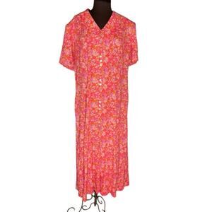 Vtg 90s Pink Floral Cottagecore Boho Maxi Dress 14W Fairy Femme Easter Coquette