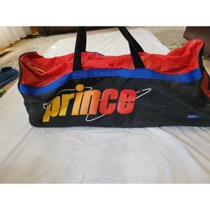 Vtg 90’s Prince Tennis Racquet Gym Travel Tour Duffle Bag Multi-Color 32" x 12.5" x 10"Adjustable shoulder strap located in side pocket