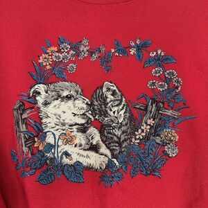 Vtg 90s Puppy Kitten Crewneck Sweatshirt Womens Small Red Dog Cat Granny Novelty