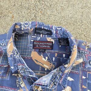 Vtg 90s ROUNDTREE & YORK Golf Clubs All Over Graphic Golf Button Up Shirt Large