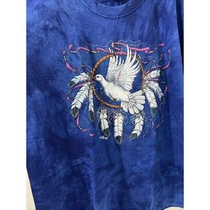 Vtg 90s Ragtops Sportswear Bird Dream Catcher Shirt Single Stitch Tie Dye Purple