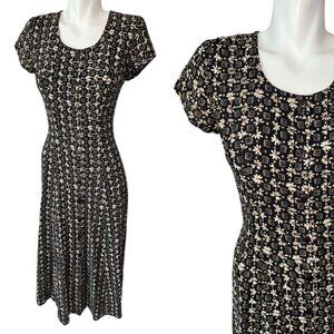 Vtg 90s Rampage Black White Daisy Print Grunge Maxi Whimsygoth Dress Sz 5 Rayon