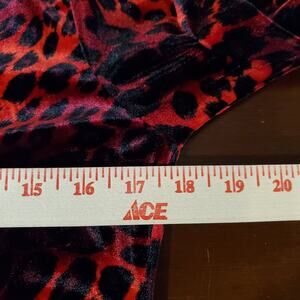 Vtg 90s Rave City Velvet Leopard V-Neck 3/4 Asymmetrical Sleeve Top Size XL USA Red Black