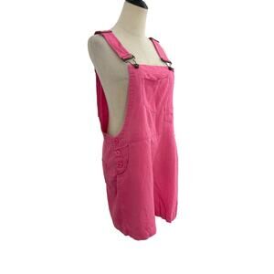 Vtg 90s Real Comfort Pink Linen Short Overalls PS Romper Y2K Adjustable Straps