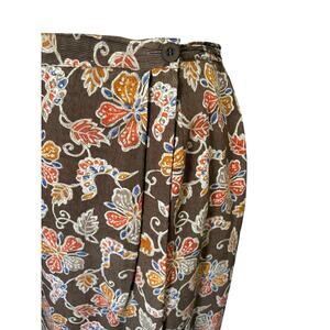 Vtg 90s Rena Rowan 100% Silk Brown Floral Wrap Skirt 18 W Fall Classic Career