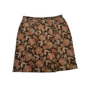 Vintage 90s Rena Rowan 100% Silk Brown Floral Skirt 18 W Fall Classic Career