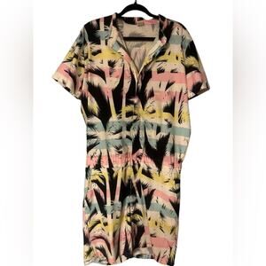 Vtg 90s Retro Palm Tree Vacation Resort CasualFunky Tropical Hawaiian Romper XL