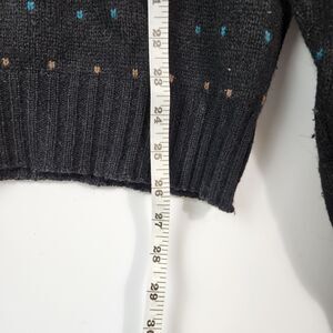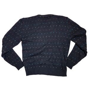 Vintage 1990s Robert Bruce Round Neck Crew Sweater Mens L ( Large ) Deep Blue Knitted Wool Blend With Small Colorful Accent Wrap Around Details Long Sleeve Eclectic Warm Grandpa Retro Quality Style