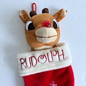 Vtg 90s Rudolph the Red Nose Reindeer Plush Christmas Stocking Red Shiny Nose 3D