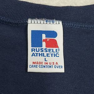 Vtg 90s Russell Athletic Cleveland Indians Navy Blue V-Neck T-Shirt Size Large. Please see pictures for condition and measurements for proper sizing and fit.