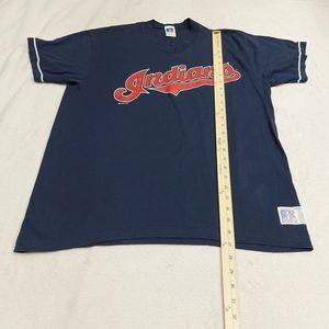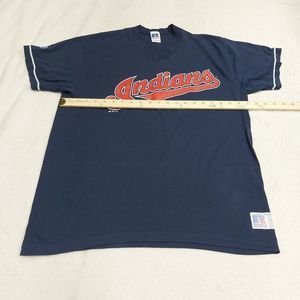 Vtg 90s Russell Athletic Cleveland Indians Navy Blue V-Neck T-Shirt Size Large