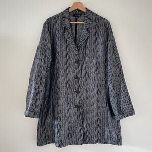 Vtg 90s SUN KIM Black White Patterned Jacquard Button Up Blazer Jacket Sz XL USA