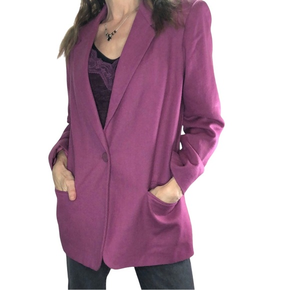 Vtg 90’s Sag Harbor 100% Wool Blazer Wo’s 12 Fuchsia Pink Classic Retro Office