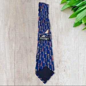 Vtg 90s Salvatore Ferragamo Silk Tie Ornate Columns Print Blue Combo