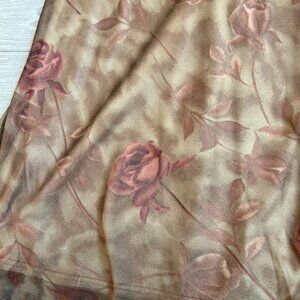- Brown chiffon with faded red roses and a gold lining fabric underneath
