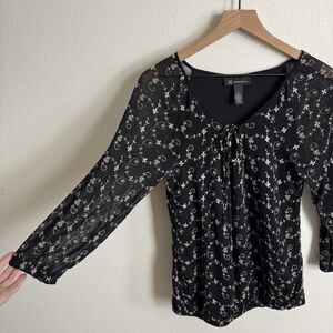 Vtg 90s Sheer Floral Mesh Top Womens Small Floral Phoebe Friends Fairy Grunge