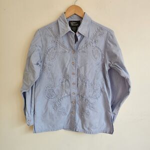 Vintage 90s Silver Threads Shirt, Women's Small, Blue Denim Embroidered Western Button-Up
