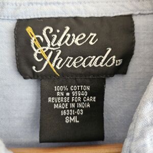 Vtg 90s Silver Threads Shirt Womens Sm Blue Denim Embroidered Western Button Up