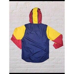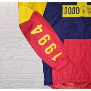 Tags: vintage, 90s streetwear, colorblock jacket, skatecore, retro vibes, grunge fit, y2k outerwear, red black windbreaker, throwback fashion, baggy streetwear, sporty retro, urban aesthetic, indie street style