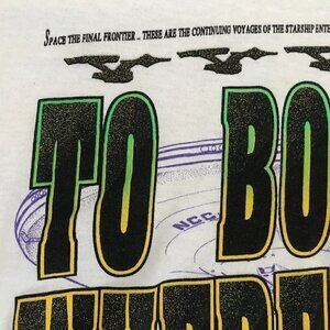 Vtg 90s Star Trek Glitter Graphic T-Shirt To Boldly Go USS Enterprise Ship 2XL