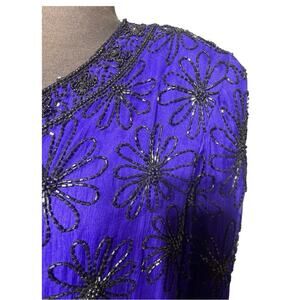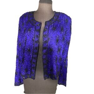 Vtg 90s Stenay Silk Beaded Floral Maximalist Jacket XL Boho Glam Disco Statement