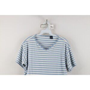 Vtg 90s Streetwear Womens Large Faded Striped Color Block V-Neck Ringer T-Shirt
