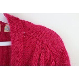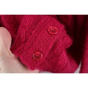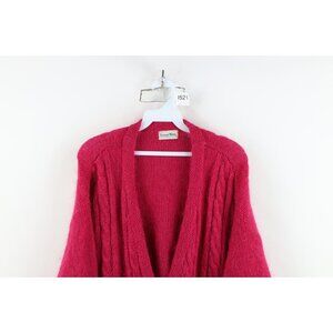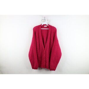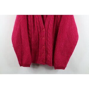 Vtg 90s Streetwear Womens Large Wool Mohair Chunky Cable Knit Cardigan Sweater