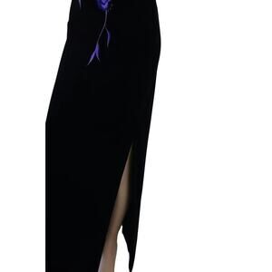90s Velvet Long Black Purple Dress Gothcore Dark Moody Floral Dramatic Prom 10