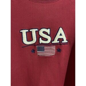 Vtg 90s Sweater Mens L Burgundy USA Flag Thick Y2K Granpacore Preppy Casual C&B