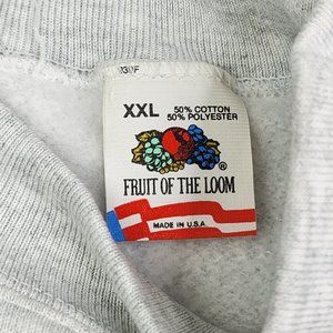 This vintage 90's sweatshirt from Fruit of the Loom is perfect for any school-themed occasion. The gray crew neck sweatshirt features a graphic print of the school's logo and is made of a comfortable blend of polyester and cotton. It has long sleeves, a regular fit and is machine washable. The sweatshirt is collerless and suitable for all seasons, making it ideal for walking in the winter, fall, or spring. It is personalized with the school's name, Spring Hope NC Primary Teacher Student School. This graphic print sweatshirt is a perfect addition to any American 90s themed wardrobe.