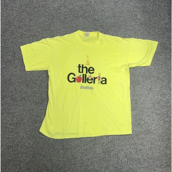 Vtg 90's The Golleria Mall Dallas Yellow Graphic T-Shirt Single Stitch Size XL. Please see pictures for condition and measurements for proper sizing and fit