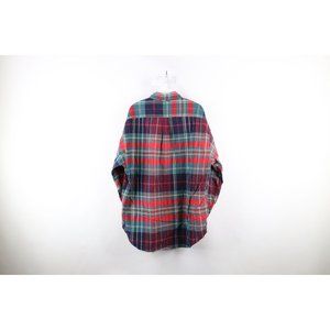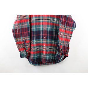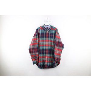 Vtg 90s Tommy Hilfiger Mens Large Faded Rainbow Plaid Collared Button Down Shirt