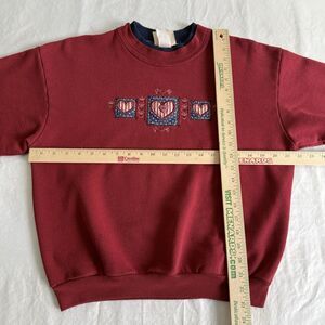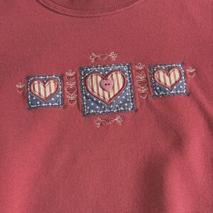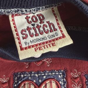 Vtg 90s Top Stitch Red Country Patriotic Hearts Embroidery Sweatshirt S/M Petite