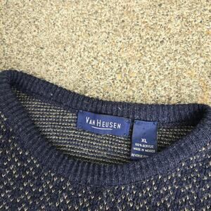 Vtg 90s VAN HEUSEN Abstract Geometric All Over Knit Pattern Crewneck Sweater XL