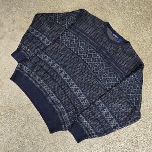 vtg 90s VAN HEUSEN abstract geometric all over knit pattern baggy medium weight crewneck sweater