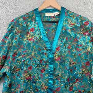 Vtg 90s VICTORIA'S SECRET Sheer Foral Button Down Sleep Shirt Small Teal Jewel